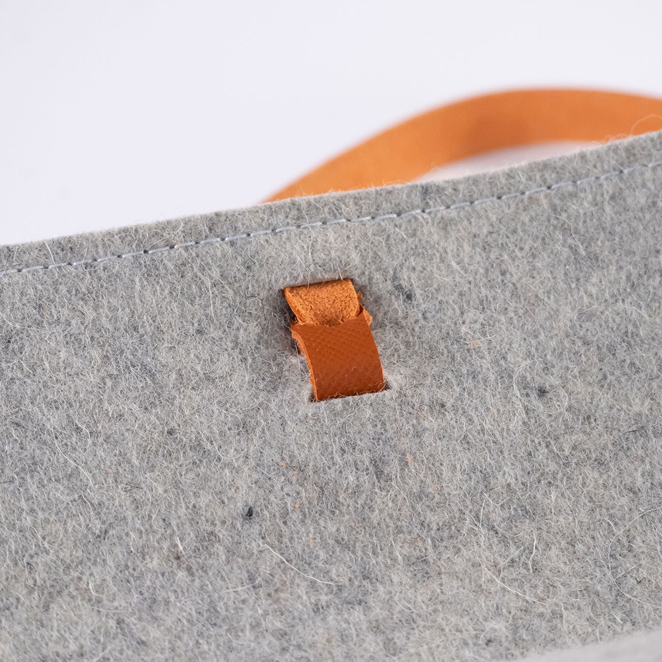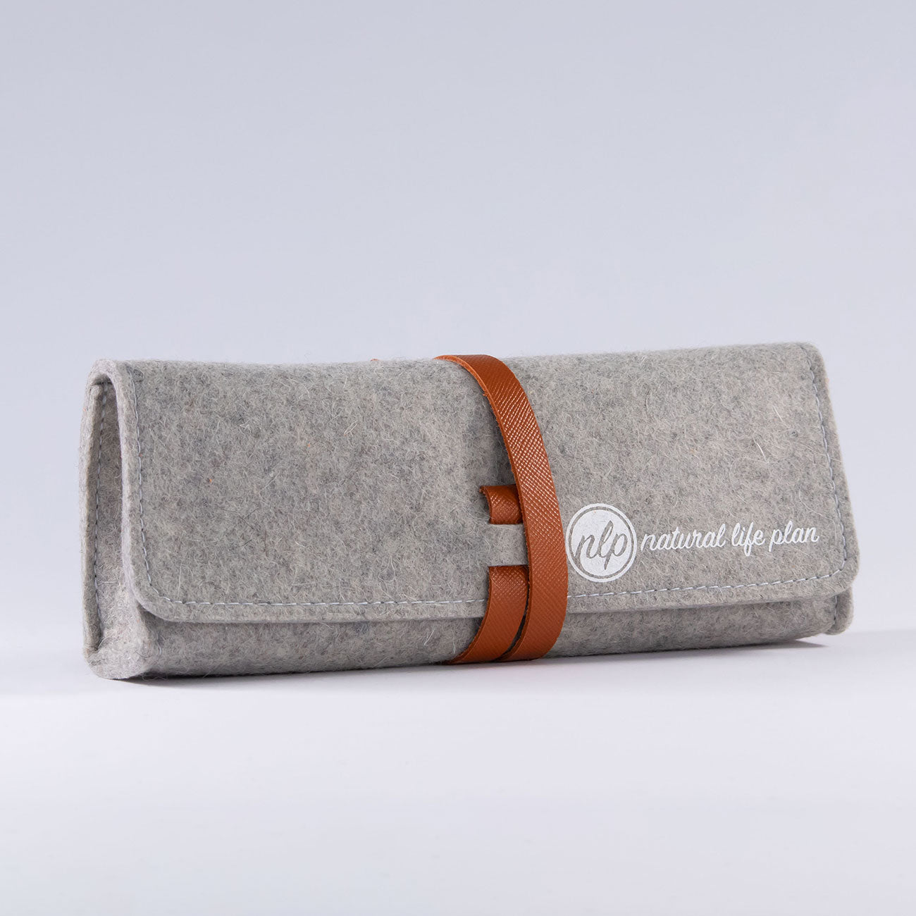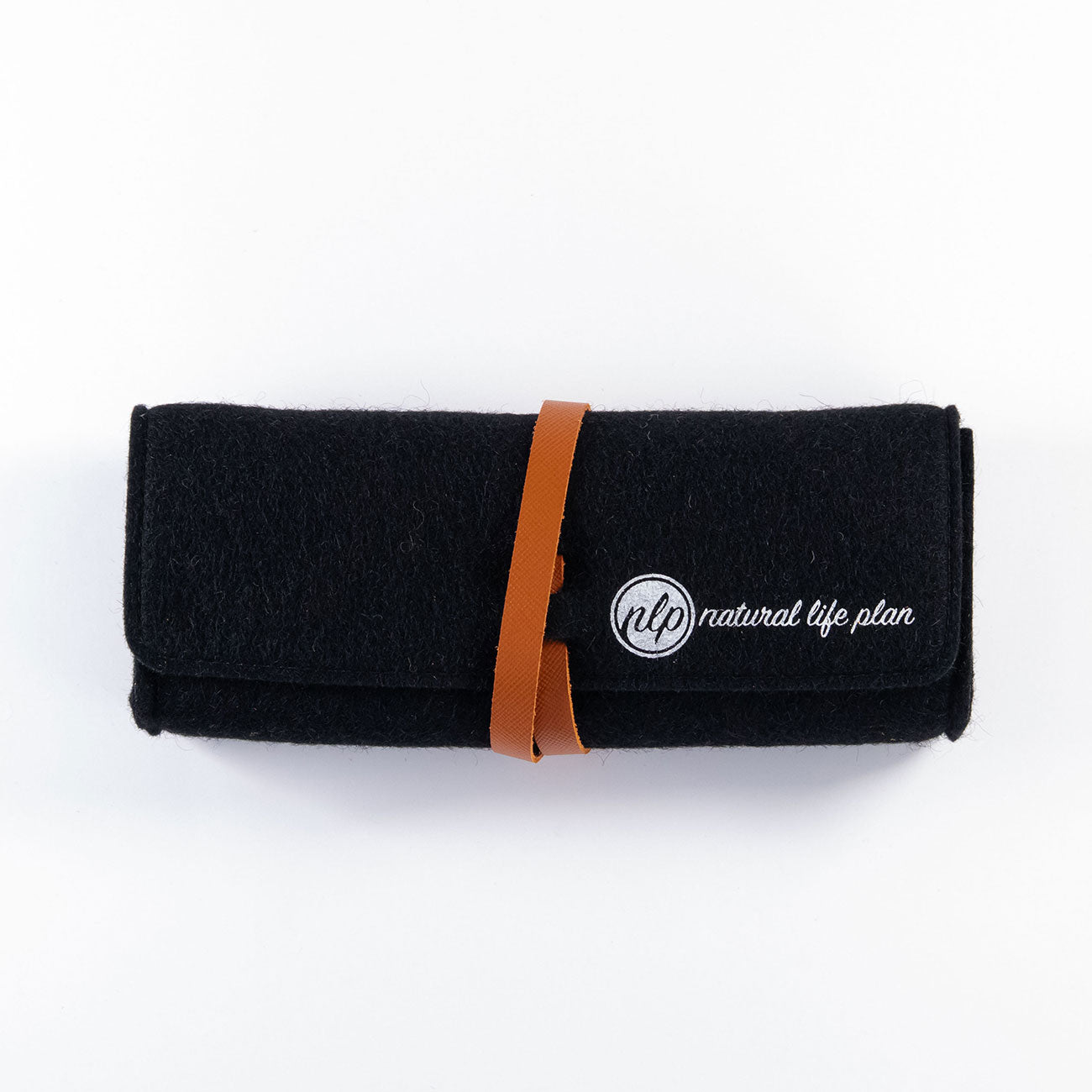 本体には羊毛100%、止め紐には天然皮革(牛革)を使用しており、環境に配慮した優しいメガネケースです。