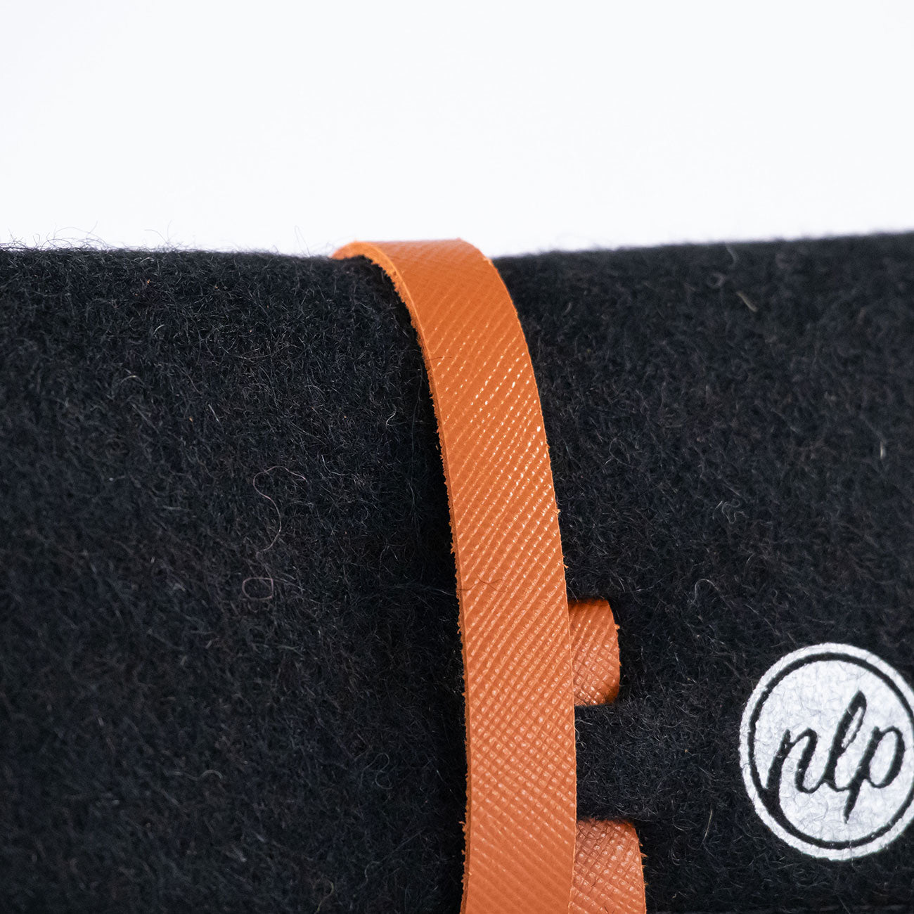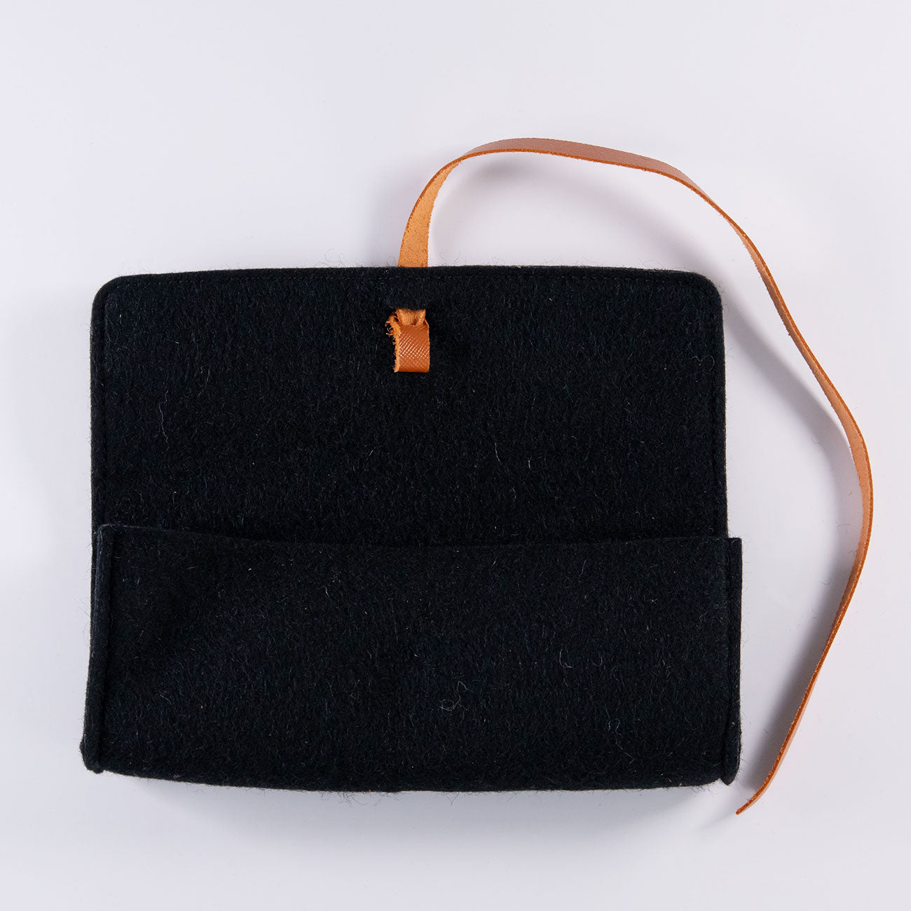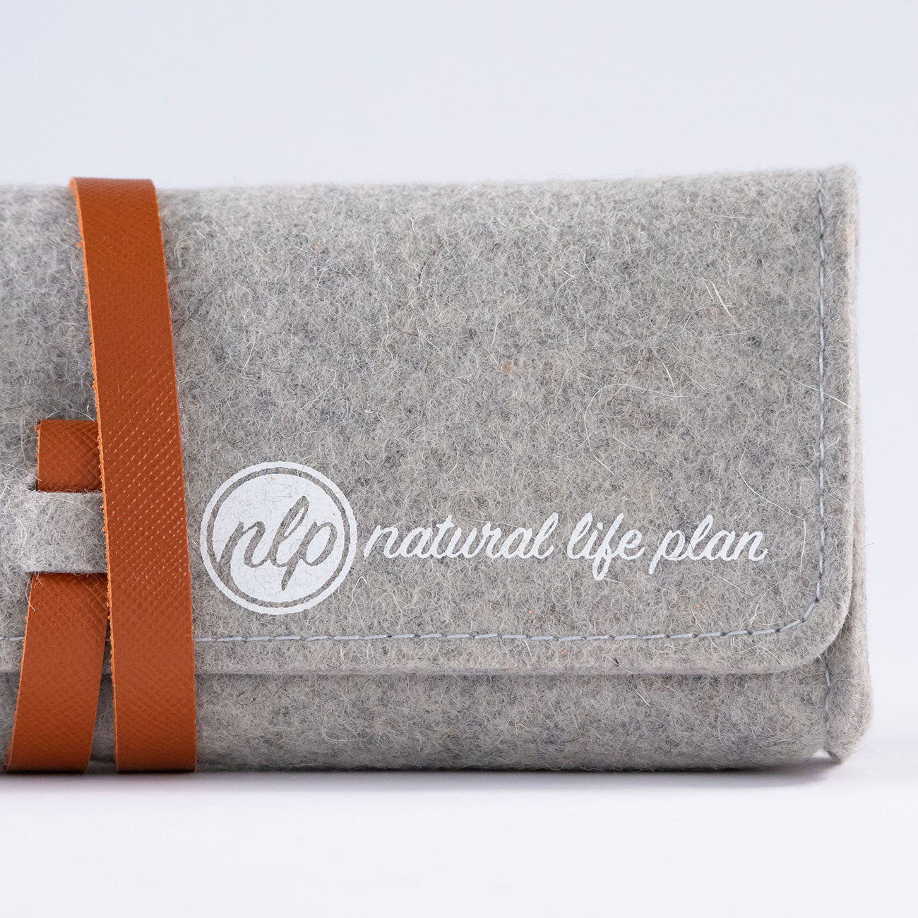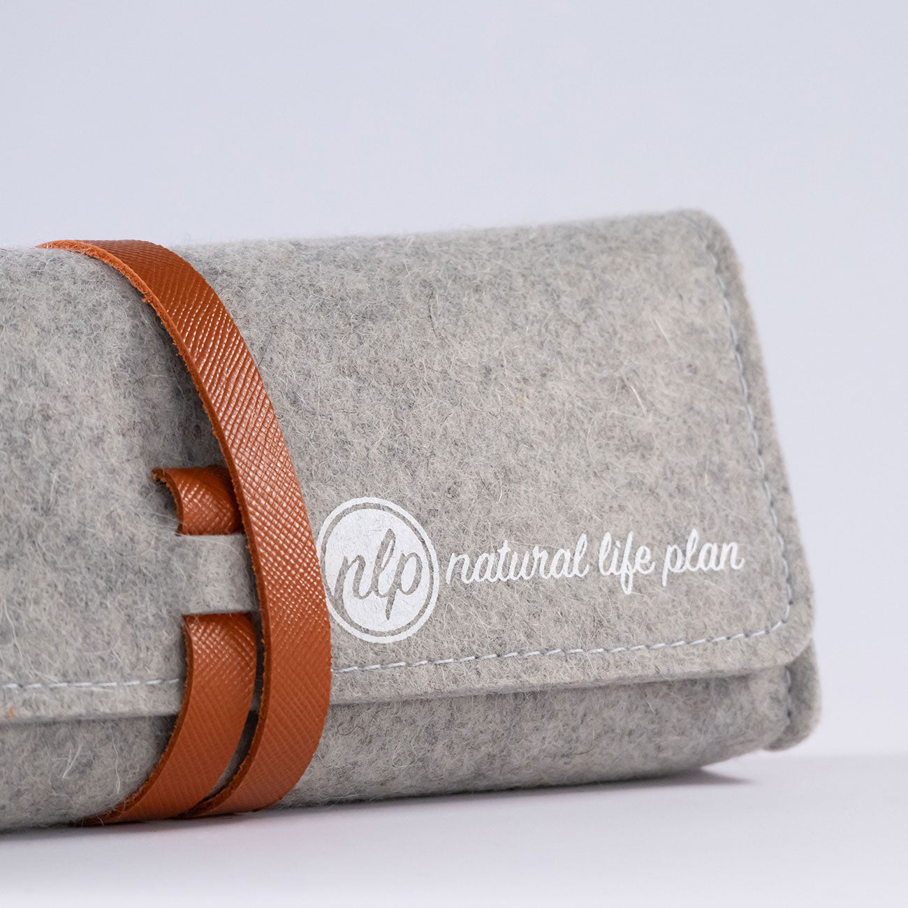 本体には羊毛100%、止め紐には天然皮革(牛革)を使用しており、環境に配慮した優しいメガネケースです。
