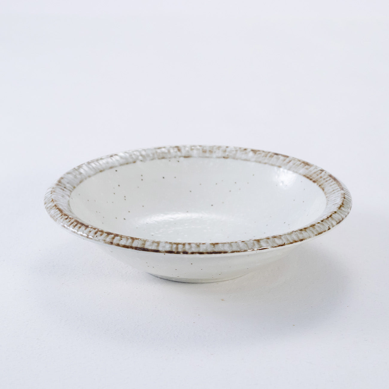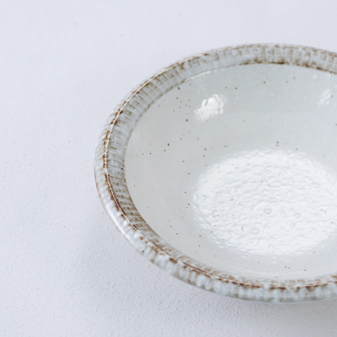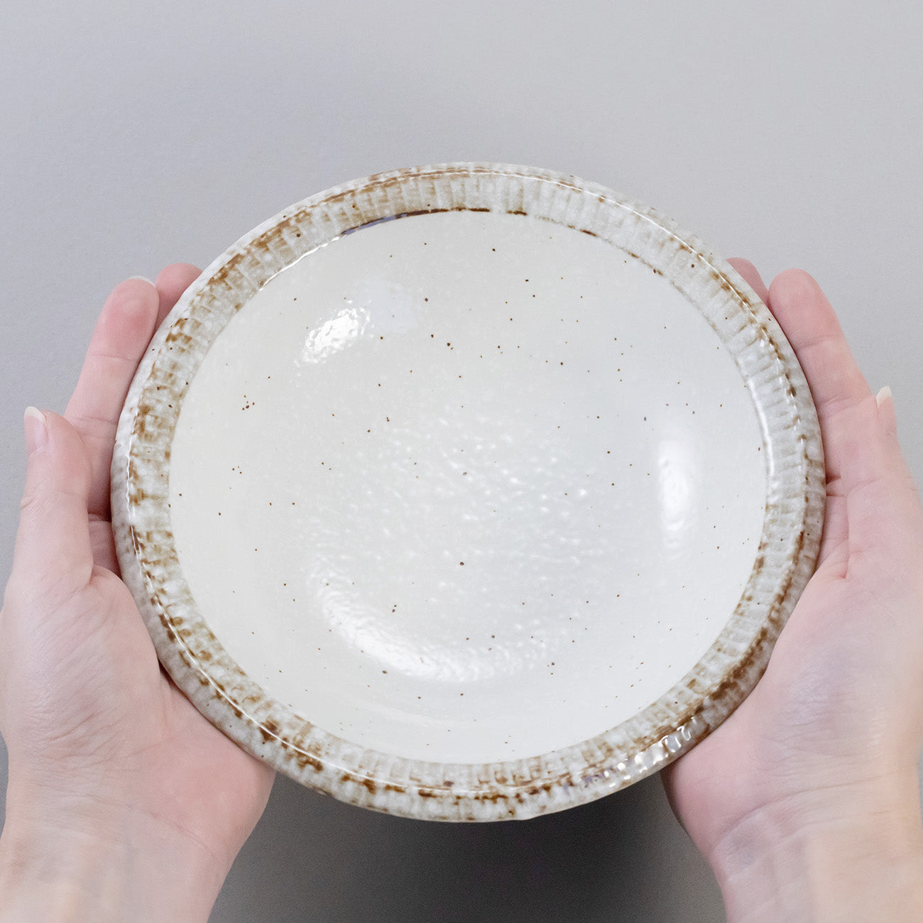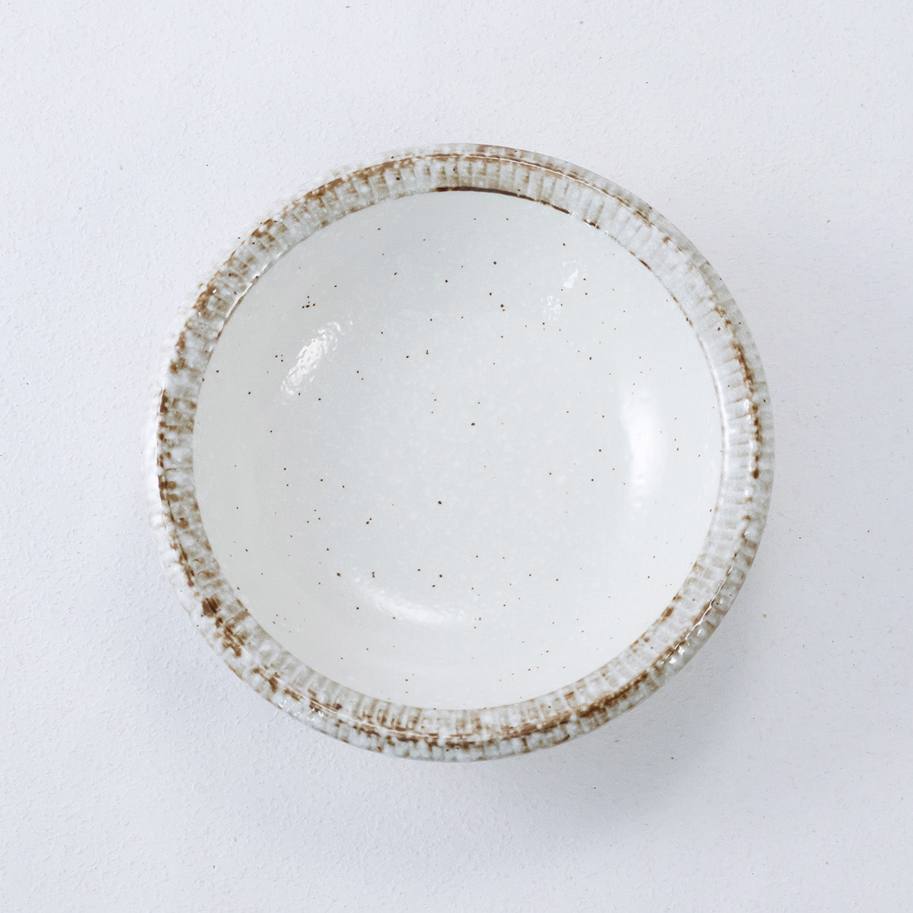 フチをぐるりと囲った凹凸のある模様は「十草柄(とくさがら)」といい、和食器によく採用される縞模様の柄です。