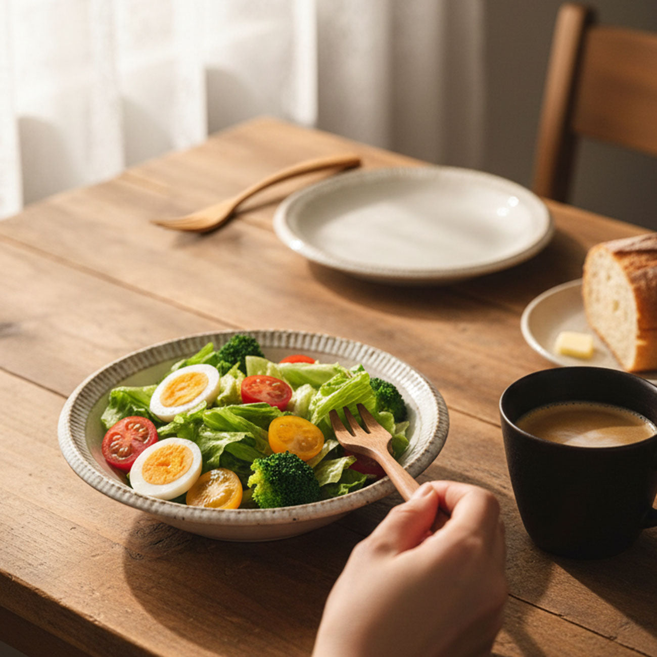 少し深みのあるお皿で、大きすぎず小さすぎないので、サラダ、煮物、スープ、シリアル、雑炊、リゾットなど、様々なシーンで毎日使えるサイズ感です。